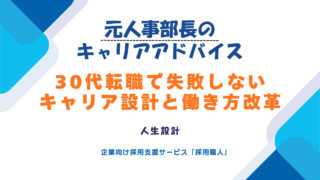 キャリア設計 30代転職で失敗しない「キャリア設計」と「働き方改革」の実践法 30代の転職はキャリアの“再設計期”。元人事部長が、年収も満足度も上げるためのキャリア設計術を5ステップで解説。自己分析・働き方の見直し・キャリアプランの描き方まで具体的に紹介します。 2025.10.27 キャリア設計転職戦略